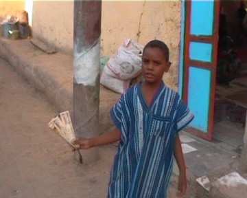 Ein Junge verkauft Papyrus-Lesezeichen |